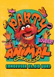 Kleurrijke Vaderdagkaart met Animal en de tekst: “Party animal louder! (Ongeveer 21.00 uur).” Verras iemand met deze leuke wenskaart van Disney en de Muppets.