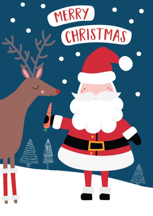Vrolijke kerstkaart met een rendier en een kerstman.