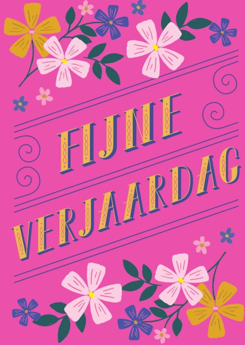 Kleurrijke verjaardagskaart met bloemen en de tekst: Fijne verjaardag.