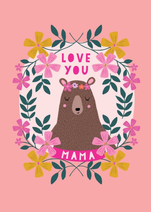 Vrolijke verjaardagskaart met illustratie en de tekst: Love you mama.
