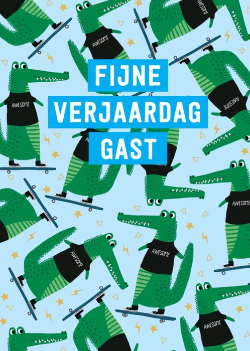 Stoere verjaardagskaart met krokodillen en de tekst: Fijne verjaardag gast.