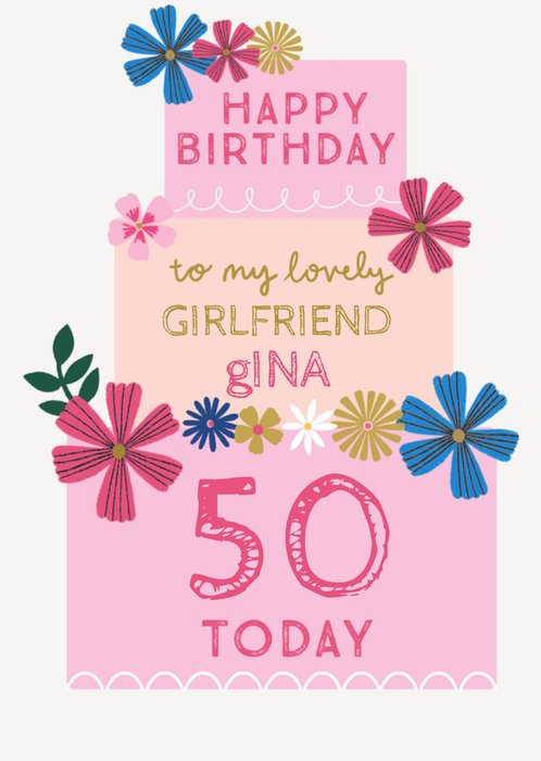 Leuke verjaardagskaart met taart illustratie en aanpasbare naam en leeftijd.