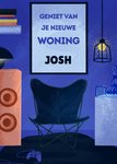 Wens de nieuwe bewoner veel geluk toe in zijn nieuwe woning met de tekst: Geniet van je nieuwe woning Josh. De naam is aanpasbaar.