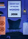 Wens de nieuwe bewoner veel geluk toe in zijn nieuwe woning met de tekst: Geniet van je nieuwe woning Josh. De naam is aanpasbaar.