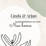 Een neutraal maar hip kaartje om te feliciteren met een nieuwe woning. Je voegt er de naam of namen van de nieuwe bewoners aan toe om de kaart een persoonlijke touch te geven.