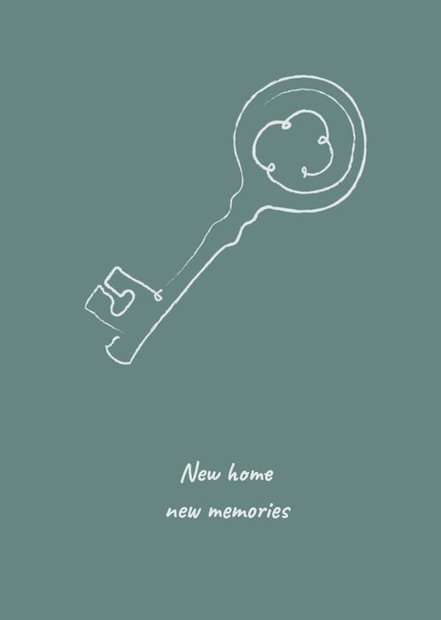 Een leuke nieuwe woning kaart met een sleutel en de tekst: New home, new memories.