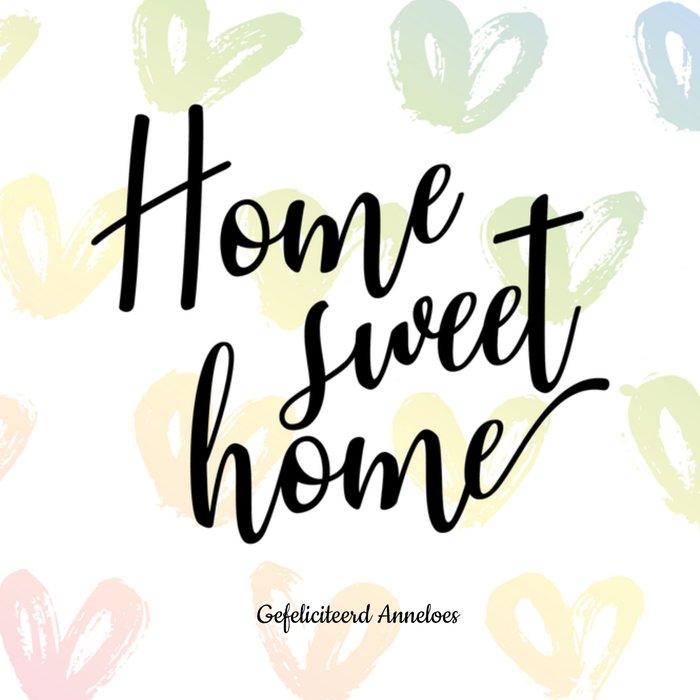Ken je iemand met een nieuwe stekkie? Stuur dan deze leuke kaart van Luckz om te feliciteren. Op de kaart staat: Home sweet home. Gefeliciteerd [naam].