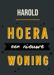 Stoere nieuwe woningkaart van Greetz met de tekst: [Naam] Hoera een nieuwe woning.