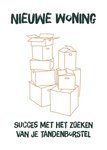 Een minimalistische nieuwe woningkaart met de tekst: Nieuwe woning. Succes met het zoeken van je tandenborstel.