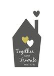 Witte wenskaart voor een nieuwe woning. De wenskaart is afkomstig van Tsjip met de tekst: Together is our favorite place to be.