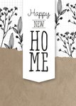 Leuke nieuwe woningkaart met de tekst: Happy new home.