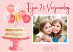 Hiep Hiep Hoera! Het is feest. Jij kent iemand die binnenkort jarig is! Stuur daarom deze leuke verjaardagskaart van Okey Dokey Design. Op de kaart staat: Fijne 7e verjaardag. Lieve nicht.
