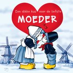 Schattige moederdag kaart met daarop moeder en kind en de tekst 'Een dikke kus voor de liefste moeder' in een hart.