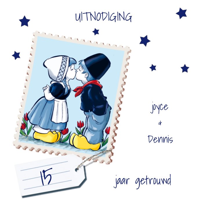 Leuke uitnodiging voor een huwelijksjubileum met aanpasbare tekst.