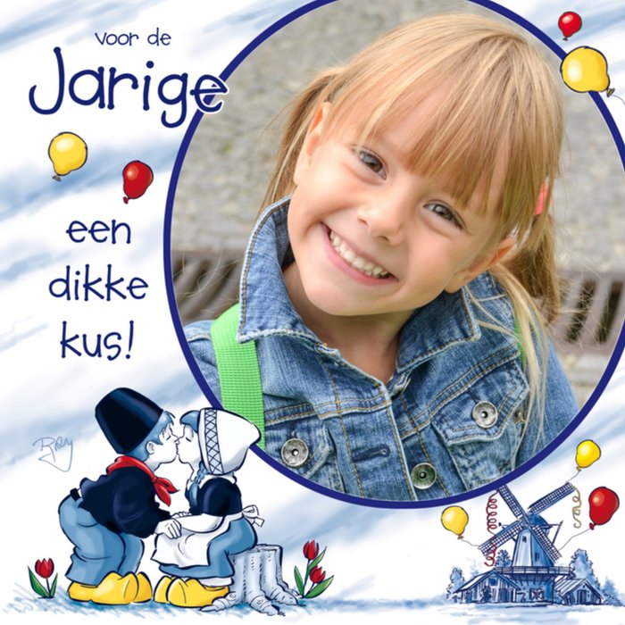 Feliciteer de jarige met deze Delfts blauwe verjaardagskaart. Voeg een leuke foto toe en bezorg een dikke kus.