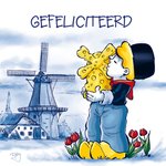 Stuur deze grappige, schattige kaart om de jarige te verrassen! Op deze wenskaart van Old Dutch staat een geillustreerde afbeelding van een boer met een molen van kaas in typische old-dutch stijl.
