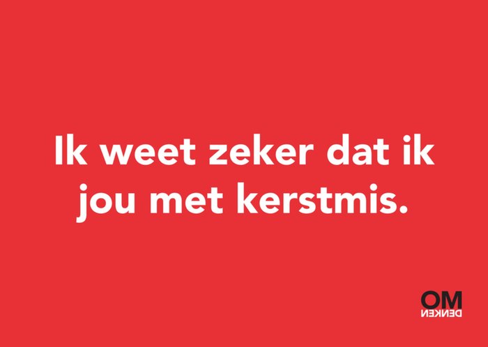 Typografische kerstkaart met een rode achtergrond en de tekst: 'Ik weet zeker dat ik jou met kerstmis.' Verras iemand met deze leuke kerstkaart van Omdenken.