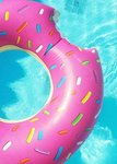 Zin om een kaartje te sturen? Dat kan met deze leuke neutrale kaart. Op de kaart zie je een opblaasdonut in een zwembad liggen.