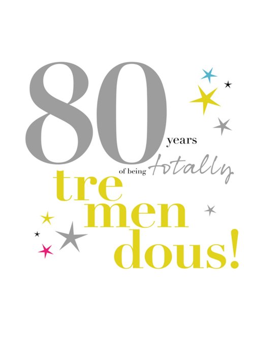 Verjaardagskaart met de tekst: 80 years of being totally tremendous!