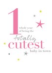 Verjaardagskaart met de tekst: 1 whole year of being the totally cutest baby in town.