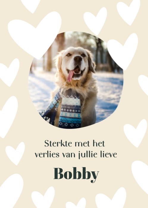 Ken je iemand die net zijn of haar huisdier is verloren? Stuur dan deze leuke kaart met tekst: Heel veel sterkte. Je kunt ook een foto toevoegen.