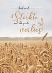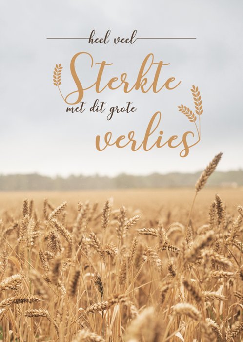 Fotografische condoleancekaart met een foto van een tarweveld en de tekst: 'Heel veel sterkte met dit grote verlies'. Laat iemand weten dat je aan haar denkt met deze mooie verjaardagskaart van Paperclip.