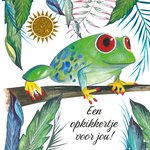 Hele leuke denken aan kaart van Paperclip met daarop een kikker en de grappige tekst: Een opkikkertje voor jou!