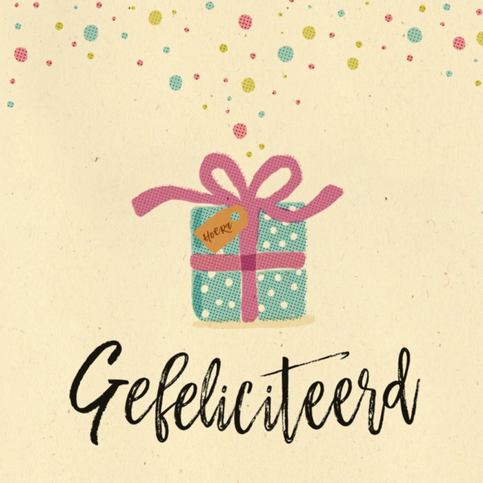 Een leuke kaart van de Papercraft collectie van Paperclip! Op deze kaart zie je een cadeau en daaronder: gefeliciteerd.