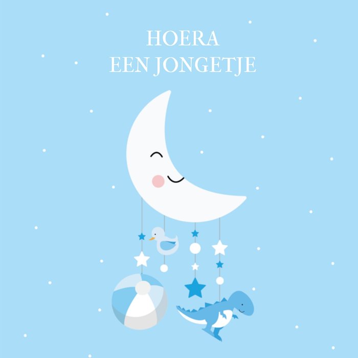 Leuk geboortekaartje met een maan en de tekst: Hoera een jongetje.