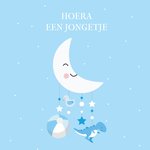 Leuk geboortekaartje met een maan en de tekst: Hoera een jongetje.