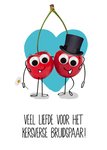 Feliciteer het kersverse bruidspaar met deze grappige kaart met kersen! En met de tekst: Veel liefde voor het kerseverse bruidspaar!