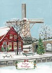 Verras met deze vrolijke kerstkaart met een besneeuwd windmolentafereel.