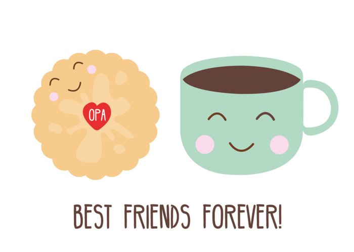Leuke opa en oma dag kaart met illustratie van een koekje en kopje koffie.