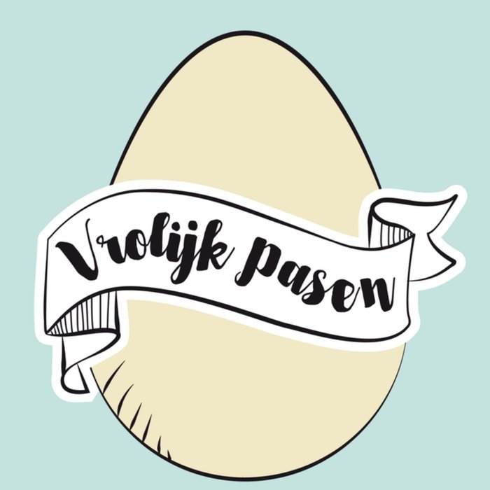 Een leuke groene kaart speciaal ontworpen voor Pasen met een grote witte paasei en de tekst: Vrolijk pasen.