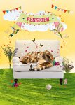 Een leuke Paperclip kaart met een afbeelding van een kat die lekker ligt op de bank met de tekst: Pensioen.