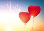 Laten weten dat je aan iemand denkt? Stuur deze mooie kaart naar hem of haar. Op de kaart staan twee hartjes ballonnen en de tekst: heel veel liefs.