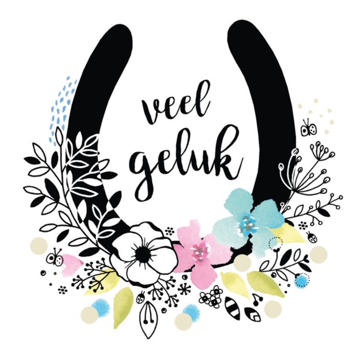 Verras met deze leuke kaart van Paperclip. Wens iemand geluk met deze kaart met hoef en de tekst: veel geluk.