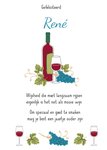 Op deze verjaardagskaart staat een mooi gedicht. Verder staat er een fles wijn op tafel met een vol wijnglas.