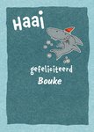 Feliciteer iemand met z'n verjaardag met deze leuke woordgrap kaart. Op de kaart staat een haai met een feesthoed en de tekst "gefeliciteerd". Je kan zelf de naam van de ontvanger op de kaart kwijt!