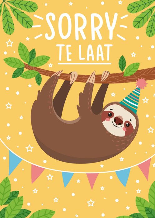 Jij bent bent te laat met het versturen van een verjaardagskaart. Stuur daarom een feestelijke kaart van Paperclip! Op de kaart staat: Sorry te laat.