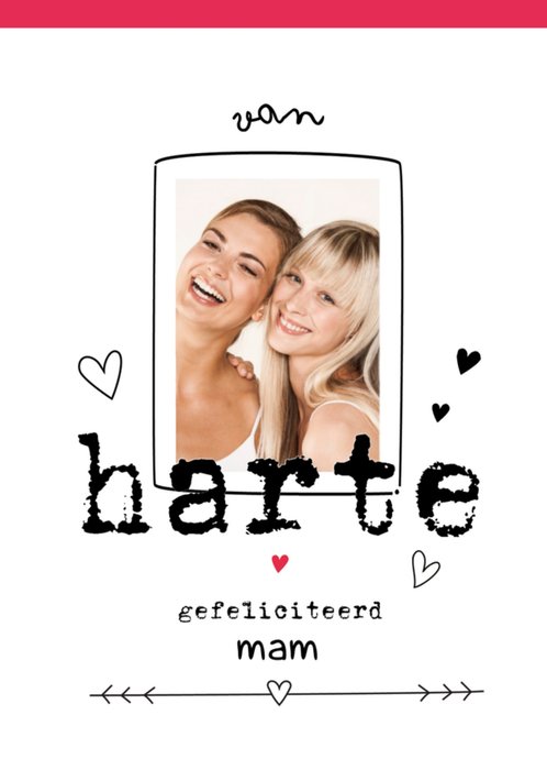 Lieve verjaardagskaart om je moeder een fijne verjaardag mee te wensen met op de kaart de tekst: Van harte gefeliciteerd mam. Je kunt een leuke foto toevoegen.