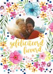 Stuur deze kleurrijke verjaardagskaart naar je wederhelft met allemaal prachtige bloemen op de kaart met de tekst: Gefeliciteerd lieverd. Voeg een leuke foto toe op de kaart.