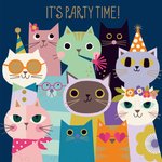 Feliciteer de jarige met deze vrolijke kaart van paperclip. Op de kaart zie je een verzameling van vrolijke en gekleurde katten met feest attributen. Bovenaan de kaart staat de tekst: "It's party time!."