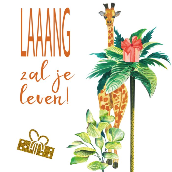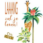 Verjaardagskaart van Paperclip om iemand een fijne verjaardag mee te wensen met op de kaart een giraf met de tekst: LAAANG zal je leven!