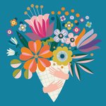 Stuur iemand deze leuke kaart om te laten weten dat je aan haar of hem denkt. Op de kaart zie je handen die een boeket bloemen vasthouden.