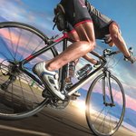 Prachtige actie fotobeeld van een sporter die aan het fietsen is bij zonsondergang.