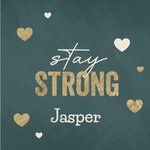 Prachtige denken aan kaart met hartjes en de tekst: 'Stay strong'. Laat iemand weten dat je aan hem denkt met deze lieve denken aan kaart van Papercute.