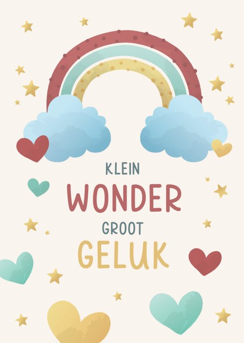 Verras met deze zoet Geboortekaart met de tekst: 'Klein wonder, groot geluk.'