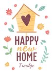 Kleurrijke nieuwe woning kaart met de tekst: 'Happy new home'. Verras iemand met deze leuke nieuwe woning kaart van Papercute.