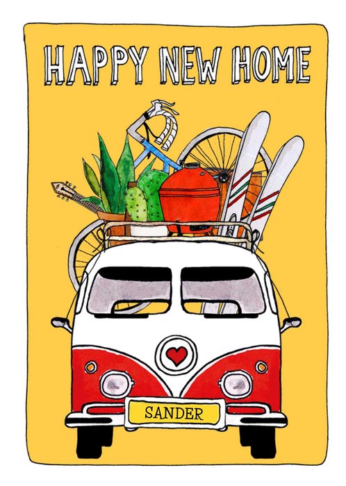 Kleurrijke nieuwe woning kaart met bomen, huisje en de tekst: 'Happy new home'. Verras iemand met deze leuke nieuwe woning kaart van Papercute.